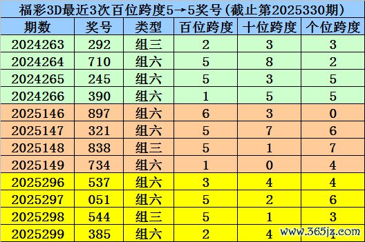 第2025296-第2025298期奖号:537、051、544,其下期奖号为:385,首位号码跨度为2;